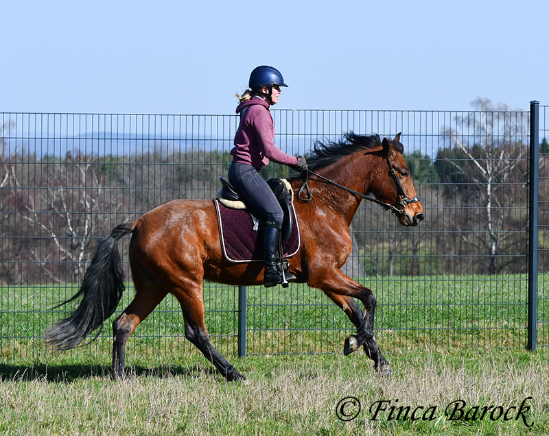 Caprichosa ist eine hübsche, schlanke, bewegungsstarke Lady mit freundlichem Charakter. Caprichosa wurde gekauft um als Zuchtstute eingesetzt zu werden. Manchmal kommt es aber im Leben dann doch anders und die Pläne der Besitzerin konnten aus persönlichen Gründen nicht umgesetzt werden.So hatte die süße Caprichosa einen schönen Sommer auf der Weide und wurde nur gelegentlich geritten. Bei uns wird sie aktuell wieder antrainiert. Sie zeigt sich unter dem Reiter als arbeitswillig, sitzbequem, fleißig und lernbereit....