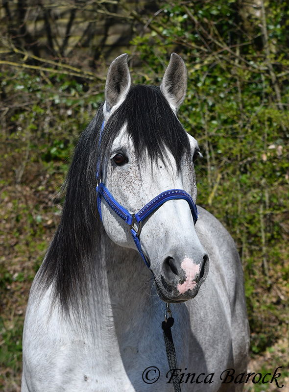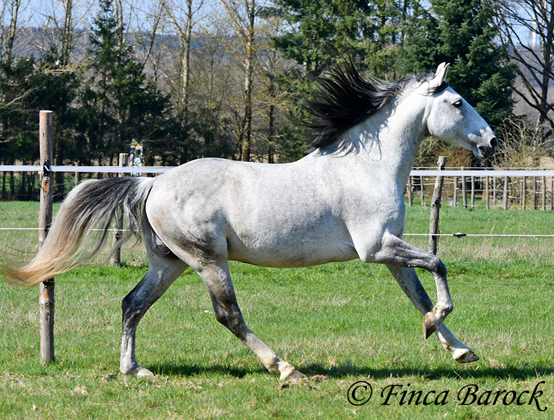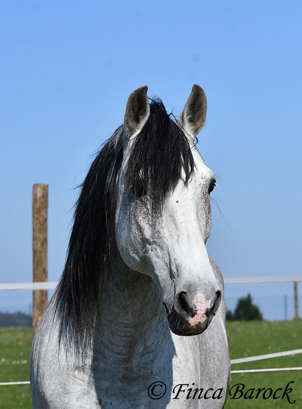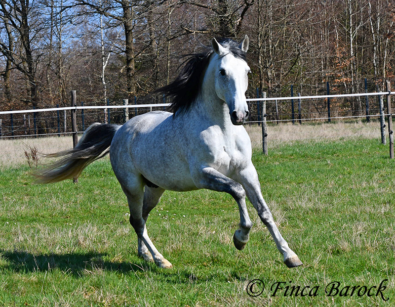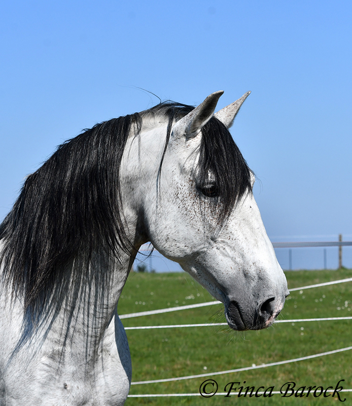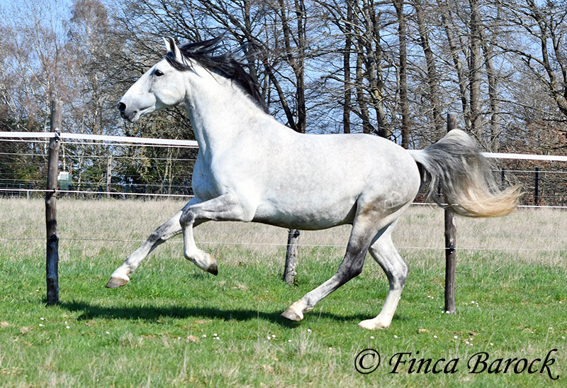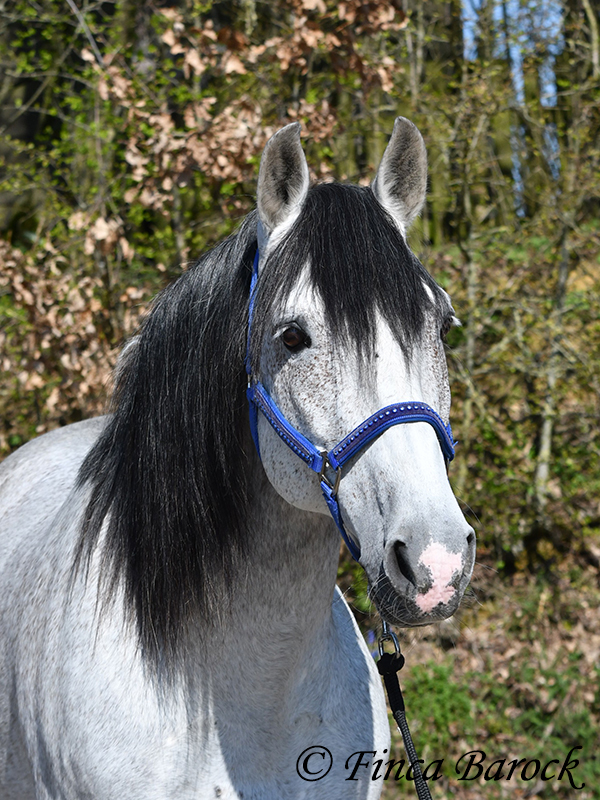 Capitan ist gekört und hat auch bereits Nachzucht. Er hat die Elitehengste Duque CXIII und Educado X in seinem Pedigree. Sein Papa Junco DP ist ein Calificadohengst. Es befindet sich einiges an Cartujanoblut in seiner Abstammung. Im letzten Jahr hat er nicht gedeckt und zeigt insgesamt fast keine Hengstmanieren.