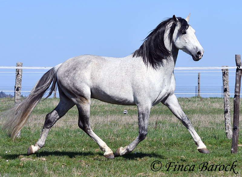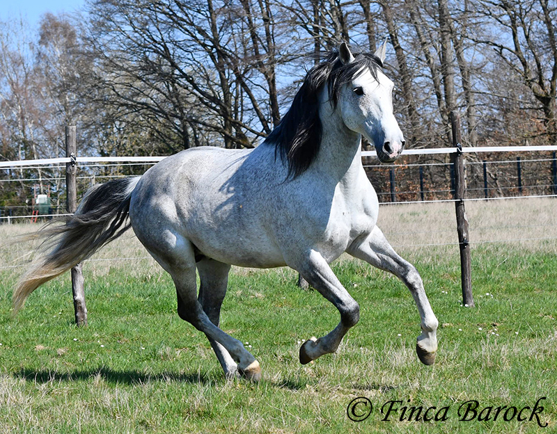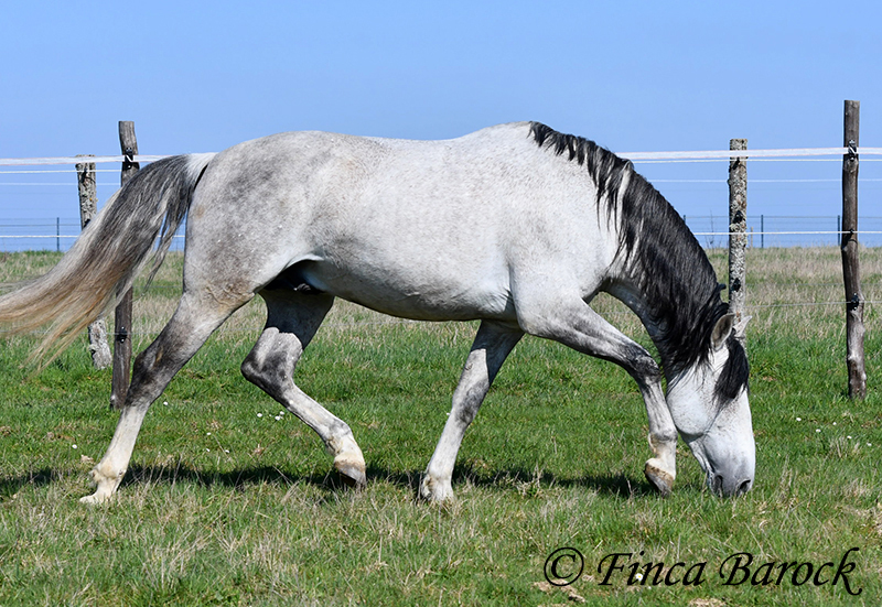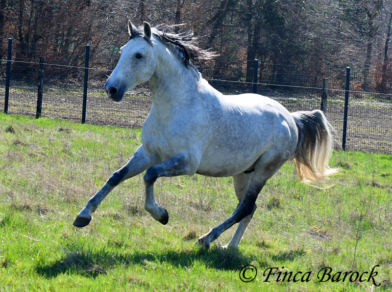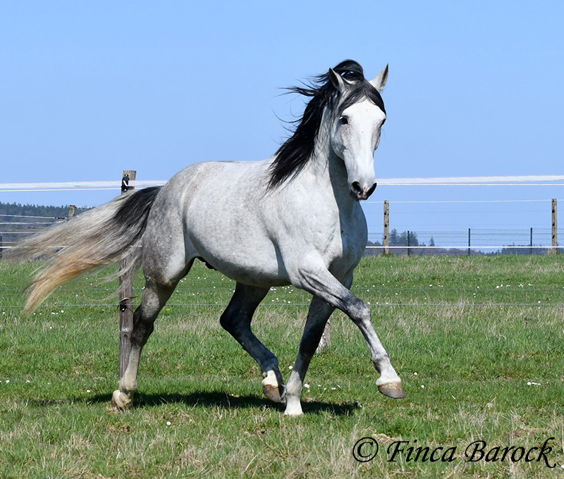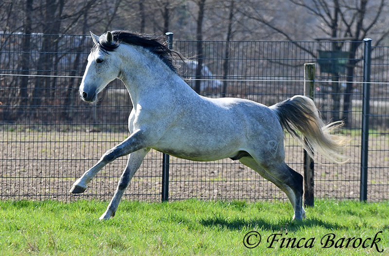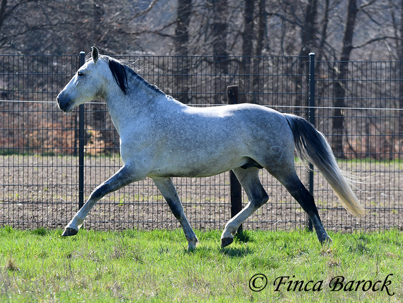 Capitan ist gekört und hat auch bereits Nachzucht. Er hat die Elitehengste Duque CXIII und Educado X in seinem Pedigree. Sein Papa Junco DP ist ein Calificadohengst. Es befindet sich einiges an Cartujanoblut in seiner Abstammung. Im letzten Jahr hat er nicht gedeckt und zeigt insgesamt fast keine Hengstmanieren.