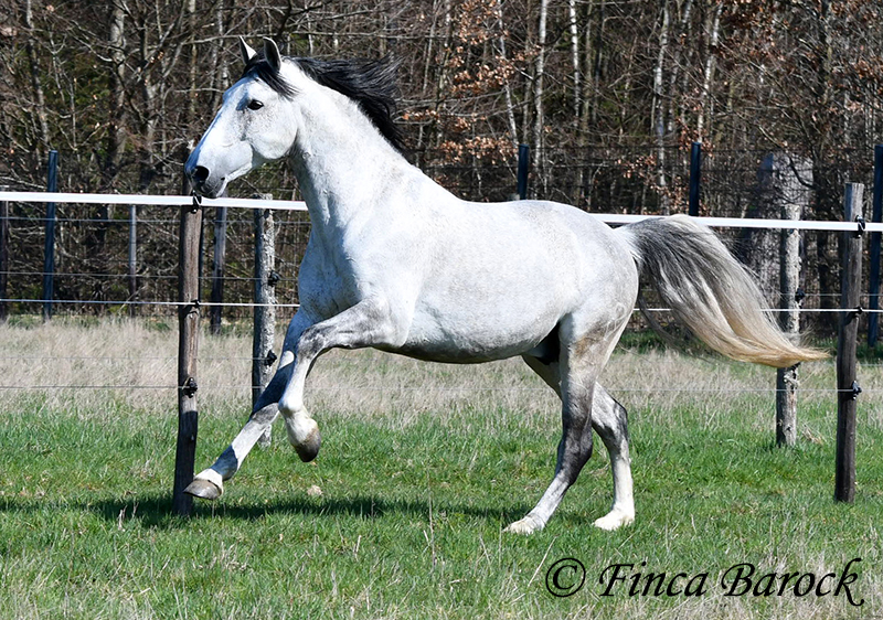 PRE, Hengst (gekört), Schimmel, 8 Jahre, 165 cm, gut Geritten, Schulterherein, Travers, Renvers, Traversale, Schritt - Galopp - Schritt Übergänge, Halbe Tritte. Kennt viel Arbeit an der Hand, macht sehr schöne hohe Span. Schritt