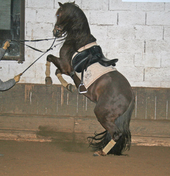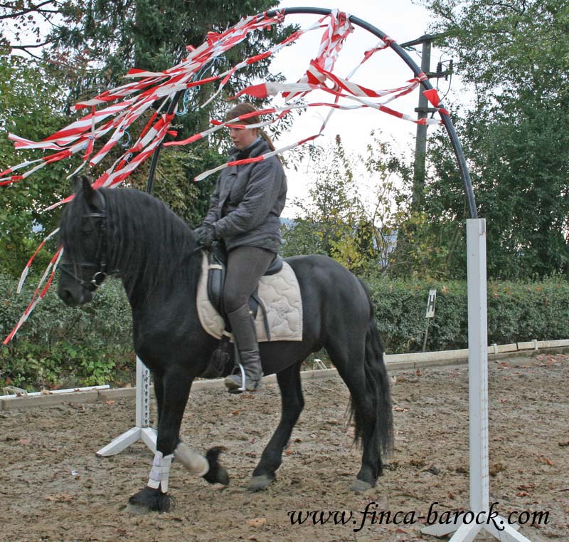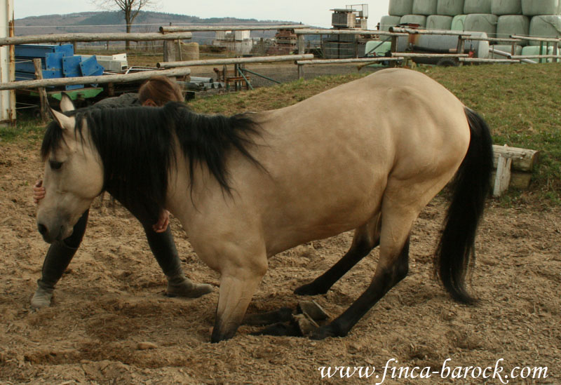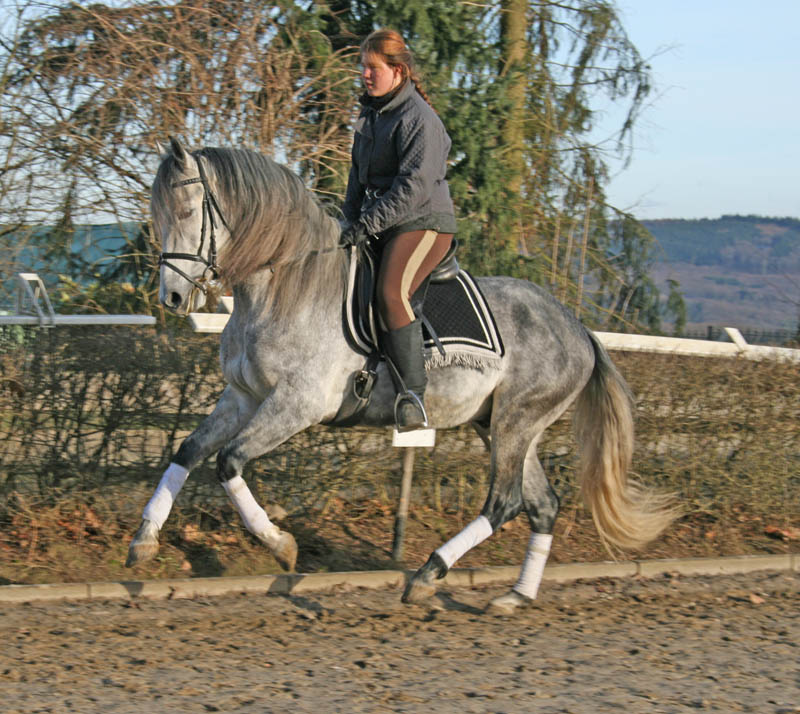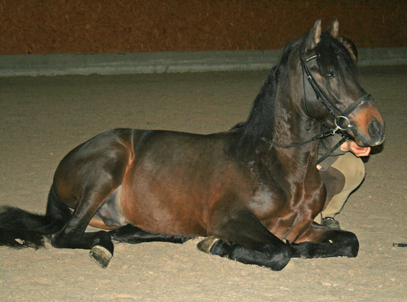 Argon soll neben dem Reiten noch Liegen, Span. Schritt und Steigen erlernen. Den Polka Schritt macht er schon perfekt, am liegen sind wir fleißig am Arbeiten.