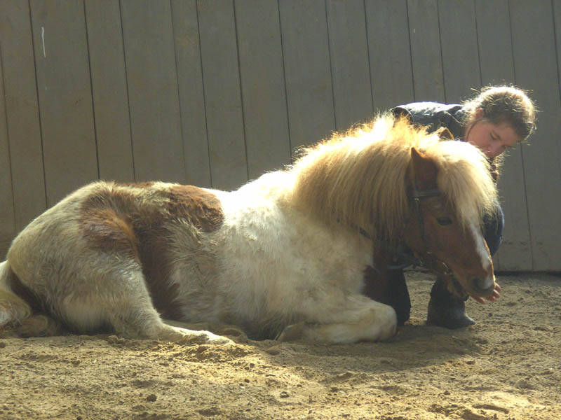 Pony Felix erwies sich als Naturtalent und erlernte innerhalb von zwei Wochen Liegen und Sitzen.