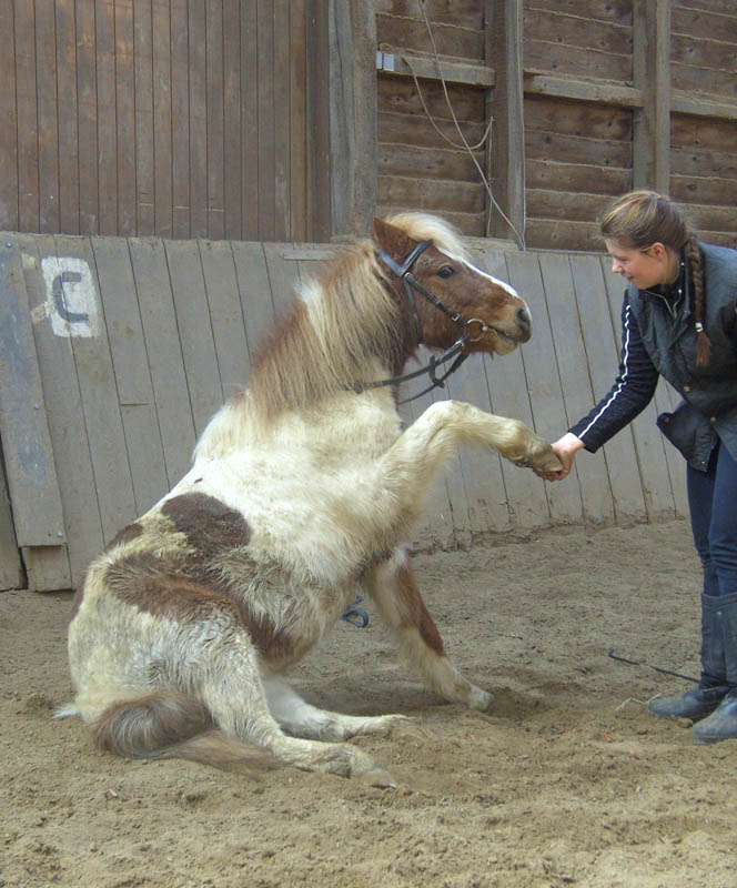 Nicht jedes Pferd lernt in 2 Tagen das Liegen. Einige bieten es an und andere wollen sich für diese Übungen gar nicht begeistern lassen.