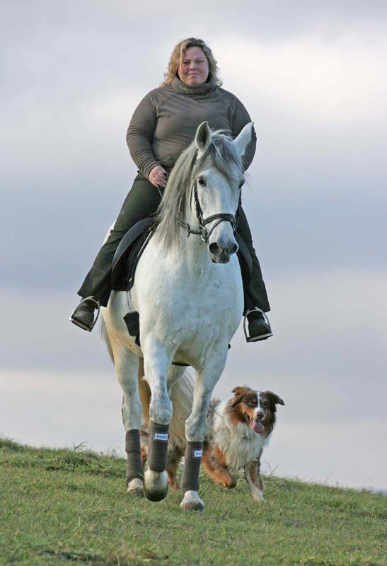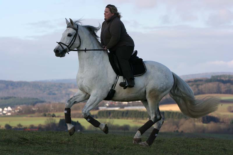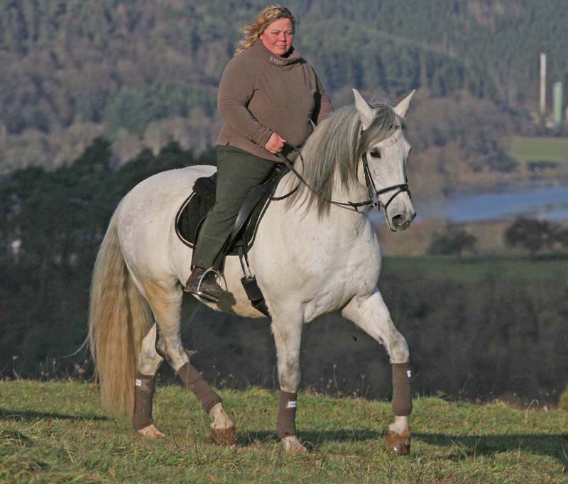 Maike und Fuerte (Catador) Hallo Alex, hier kommen mal ein paar Bilder von Catador und mir. Catador hat sich sehr gut eingelebt, nach nun fast einem halben Jahr klappt alles sehr gut, ab und zu geht er als Schulpferd im Unterricht mit, er mag Kinder und ist ein geduldiger Lehrmeister. Ich suchte im Juli 2010 ein nettes Pferd welches bequem zu sitzen und angenehm im Temperament ist, dies habe ich bei dir gefunden. Vielen Dank ich hoffe ihr veranstaltet dieses Jahr wieder ein Breitensportfestival in Stahlhofen/Untershausen, es wäre sehr schön. Grüße Maike und Catador alias "Fuerte"