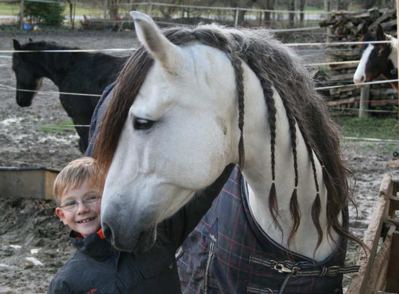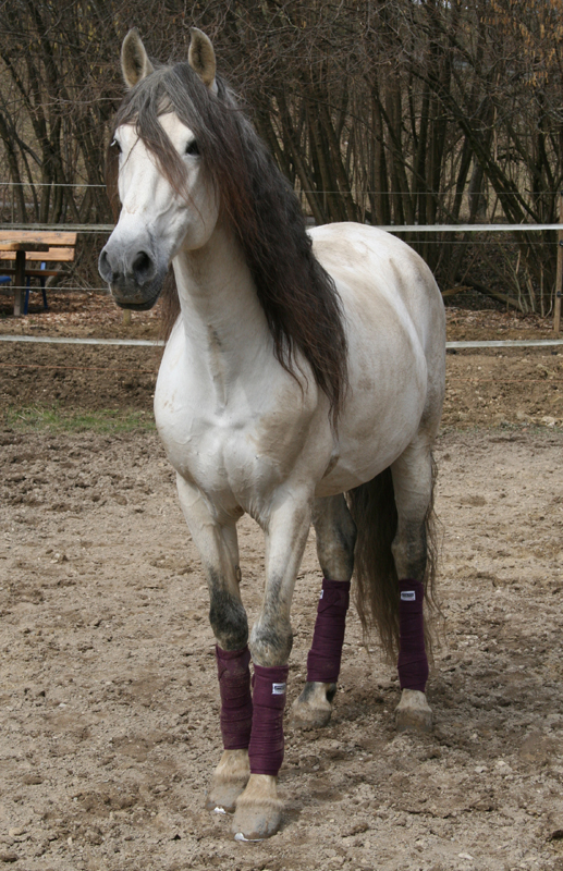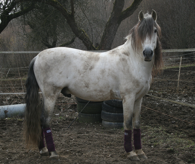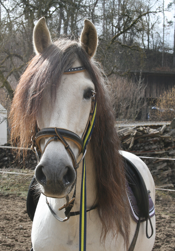 Manuela und Furtivo Eigentlich waren wir ja auf der Suche nach einem PRE Hengstfohlen, der zusammen mit unserem Friesenfohlen aufwachsen sollte. Naja, aber wir landeten wie so oft, auf der Internetseite von der Alex ;) Sie hatte zwar kein Fohlen zum verkauf, aber Furtivo, ein traumhaft, schöner 11 jähriger PRE Hengst. Das Thema Fohlen war schnell abgehakt , denn ich wollte unbedingt Furtivo haben ;) Da wir fast 400km von der Alex weg wohnen, entschlossen wir uns ihn ohne Probe zu reiten und "Live" gesehen zu haben , rein nur nach den Fotos, ihn zu kaufen! Als wir dann nach 5 langen Autostunden in Untershausen ankamen, konnten wir endlich unsern Bub in "echt" sehen. Mein erster Gedanke war nur: man der ist ja noch schöner als auf den Bildern ;) Nach langer Fahrt kamen wir dann endlich mit Furtivo im neuen Zuhause an, er war tierisch nervös und es dauerte auch sehr lange, bis er sich endlich eingelebt hatte. Nun, nach fast einem Jahr, kann ich sagen, er ist einfach ein traumhaftes Pferd, Charakterlich einwandfrei uns für mich noch immer der Schönste ;)) Vielen Dank für dieses tolle Pferd! Würde jederzeit wieder "blind" ein Pferd bei der Alex kaufen!
