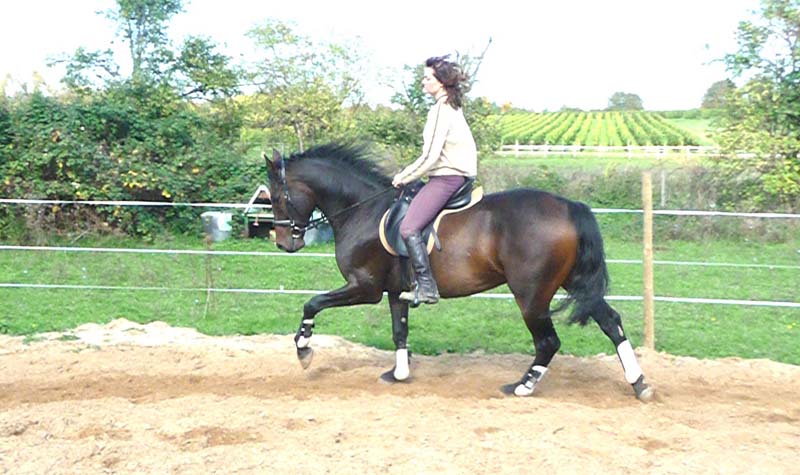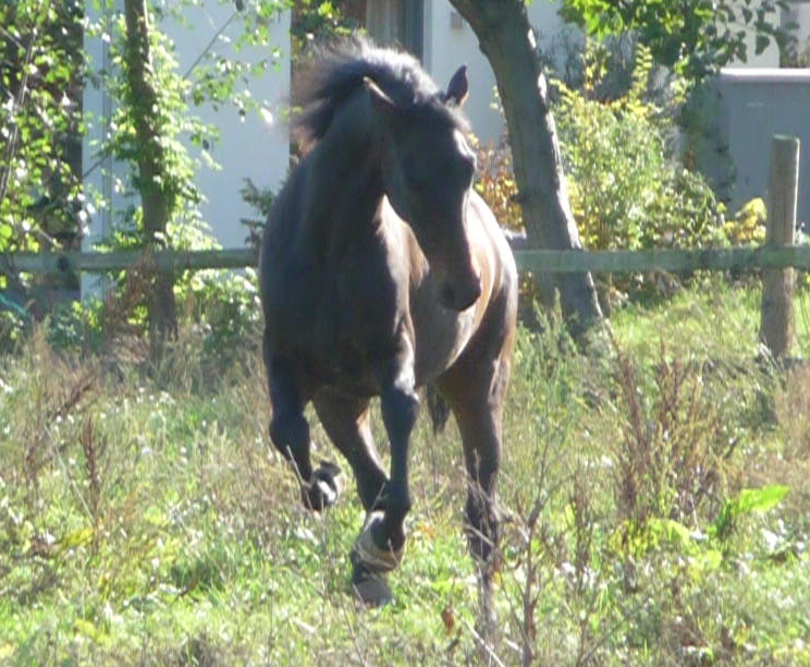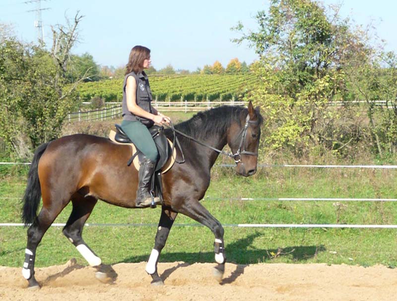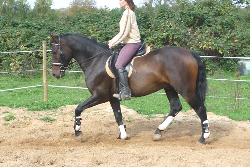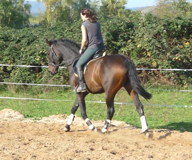 Puerto und Susi Puerto ist mein vierjähriger Andalusierwallach. Vor zwei Monaten habe ich ihn bei Alex gekauft, damals war er gerade vier Tage zuvor aus Spanien gekommen. Ich hatte vorher noch nie einen „Spanier“ geritten und war so begeistert, wie fein er am Bein und an der Hand war... Ich bin überglücklich über ihn, ich hätte kein besseres Pferd finden können und ihm gefällt das freie Leben im Offenstall mit Riesenweide und drei Freunden (zwei Araber, ein Pony) natürlich. Nun trainieren wir zusammen drei bis viermal pro Woche Dressur auf unserem eigenen Platz, zum Ausgleich gehen wir ins Gelände. Ich will nächstes Frühjahr mal Cavaletti kaufen und aufstellen oder daraus und aus anderen Materialien den einen oder anderen kleinen Sprung basteln...Ich bin sehr stolz auf ihn...!