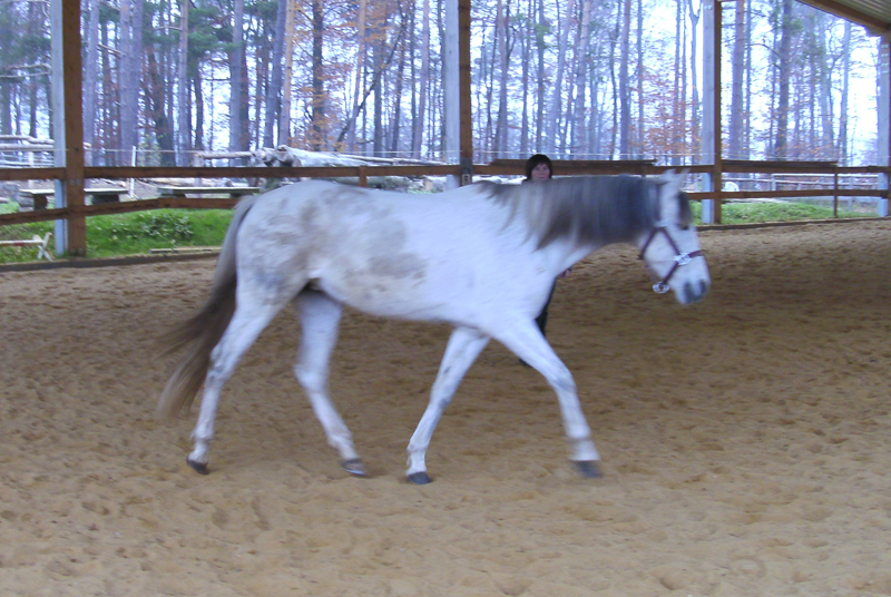 Mein kleiner Wirbelsturm ist jetzt schon sehr viel ruhiger geworden und nach viel Bodenarbeit und danach sehr viel Schritt sind wir jetzt schon so weit, dass wir zusammnen durch den Wald düsen können.