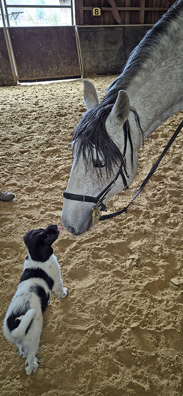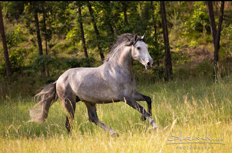 PRE, Hengst (gekört), Schimmel, 8 Jahre, 165 cm, gut Geritten, Schulterherein, Travers, Renvers, Traversale, Schritt - Galopp - Schritt Übergänge, Halbe Tritte. Kennt viel Arbeit an der Hand. Span. Schritt angefangen