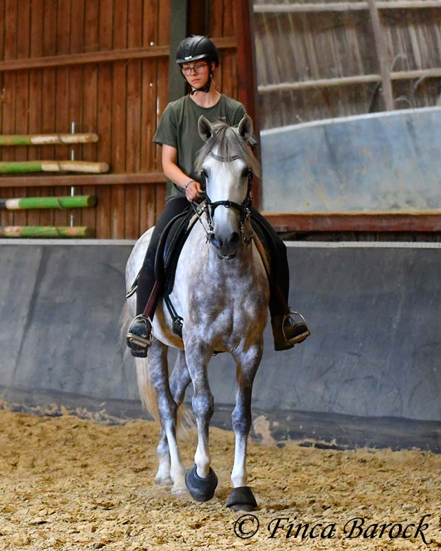 Fragt man 3 mal an der selben stelle die selbe Lektion, so nimmt er diese schnell vorweg. Ein hochgenuss für den feinen Reiter, welcher ein reaktionsschnelles, kopfklares Pferd wünscht.
