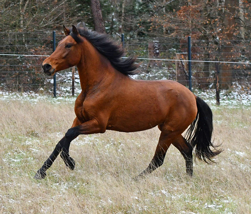 Caprichosa ist eine hübsche, schlanke, bewegungsstarke Lady mit freundlichem Charakter. Caprichosa wurde gekauft um als Zuchtstute eingesetzt zu werden. Manchmal kommt es aber im Leben dann doch anders und die Pläne der Besitzerin konnten aus persönlichen Gründen nicht umgesetzt werden.So hatte die süße Caprichosa einen schönen Sommer auf der Weide und wurde nur gelegentlich geritten. Bei uns wird sie aktuell wieder antrainiert. Sie zeigt sich unter dem Reiter als arbeitswillig, sitzbequem, fleißig und lernbereit....